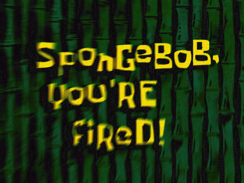 Ele então informa SpongeBob severamente que ele foi demitido. No início, pensando que isso é uma piada, Sr. Siriguejo responde em uma voz stern ele realmente disparou, fazendo com que Bob Esponja a chorar. Sr. Siriguejo sai, enquanto remove o chapéu de trabalho de Bob Esponja. O tiro vai para SpongeBob sloushing em uma cadeira, enquanto Gary lendo jornal.